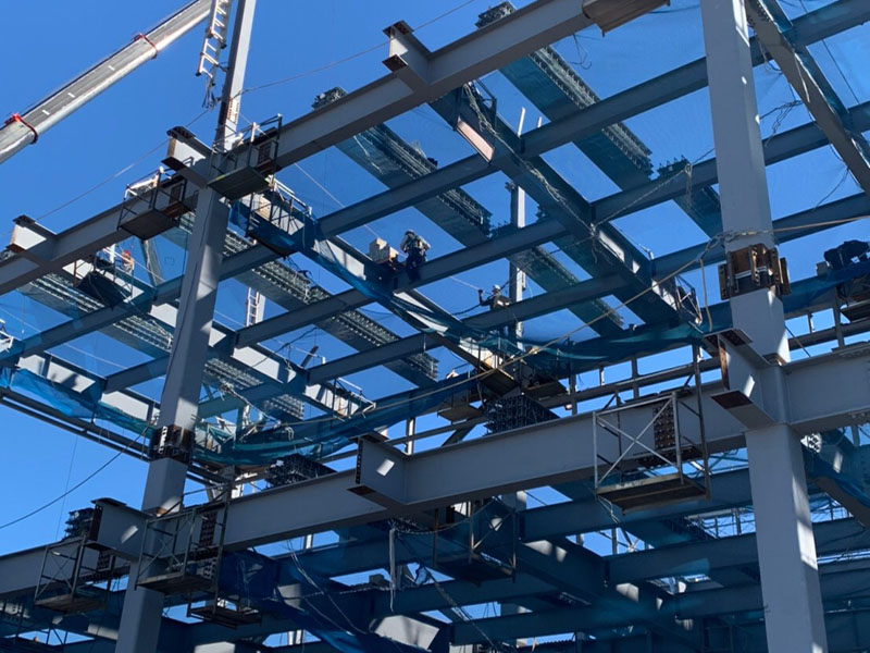 「鉄骨工事」とは、建築物の躯体(骨組み)にスチールの部材を用いた鉄骨造の建物工事のことです。